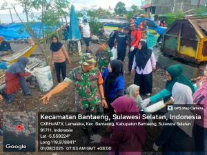 Bantaeng, — Dalam rangka mendukung program kerja Kuliah Kerja Nyata (KKN) Profesi Kesehatan Angkatan ke-67 Universitas Hasanuddin, Sertu Salasing, Babinsa Kelurahan Lamalaka Koramil 1410-02/Eremerasa Kodim 1410/Bantaeng, turut serta dalam kegiatan aksi bersih pesisir di wilayah Kampung Beru, Kelurahan Lamalaka, Kecamatan Bantaeng, Kabupaten Bantaeng, Jumat (01/08/2025).