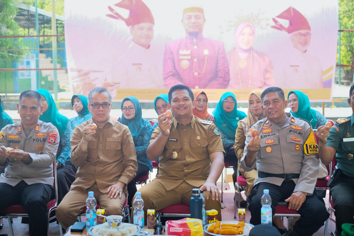 BANTAENG – Bupati Bantaeng, M. Fathul Fauzy Nurdin, berbaur dengan 400 siswa yang terdiri 350 siswa Sekolah Dasar dan 50 siswa Taman Kanak-kanak dalam pelaksanaan Gerakan Gemar Makan Telur, yang digelar di Lapangan Tenis Pelti Bantaeng, Jl. Raya Lanto, Selasa, 14 Oktober 2025.